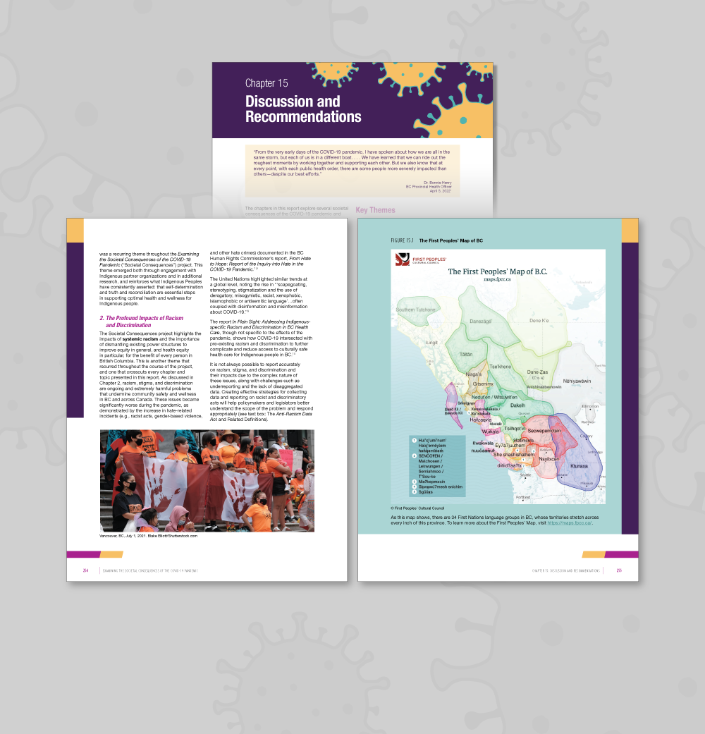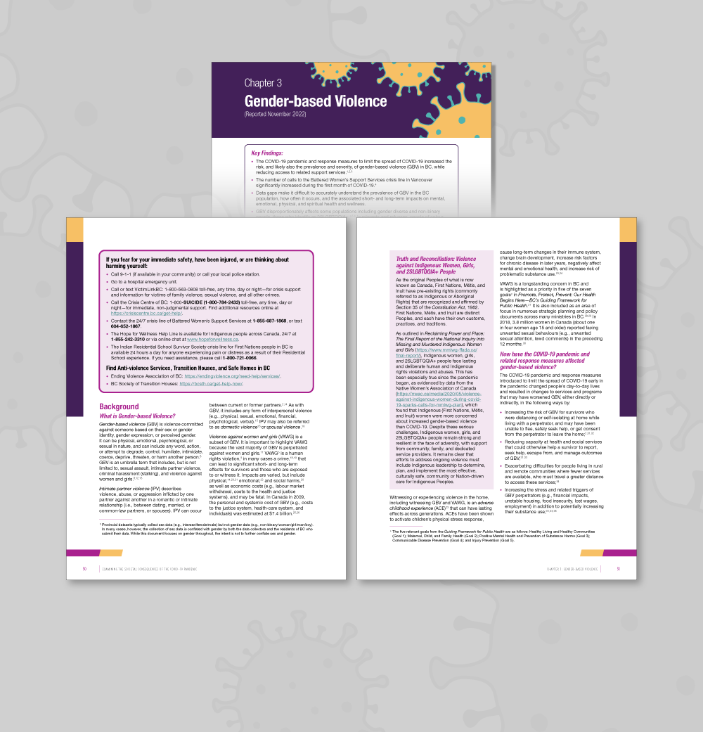 This is a joint report with the BC Centre for Disease Control, and includes contributions from Métis Nation BC and the First Nations Health Authority. The project and this compilation report explore the experiences of British Columbians early in the COVID-19 pandemic (2020–2021), with the goal of identifying, monitoring, and reporting on positive and negative consequences of response measures implemented to curb the spread of COVID-19.